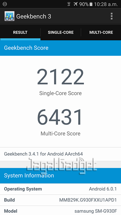 Geekbench 3 digunakan untuk menguji kemampuan prosesor. Angka yang ditampilkan akan menjadi hasil uji yang cukup konsisten dan bisa digunakan untuk acuan yang cukup baik. Skor single core akan menggambarkan kenyamanan penggunaan sehari-hari.
