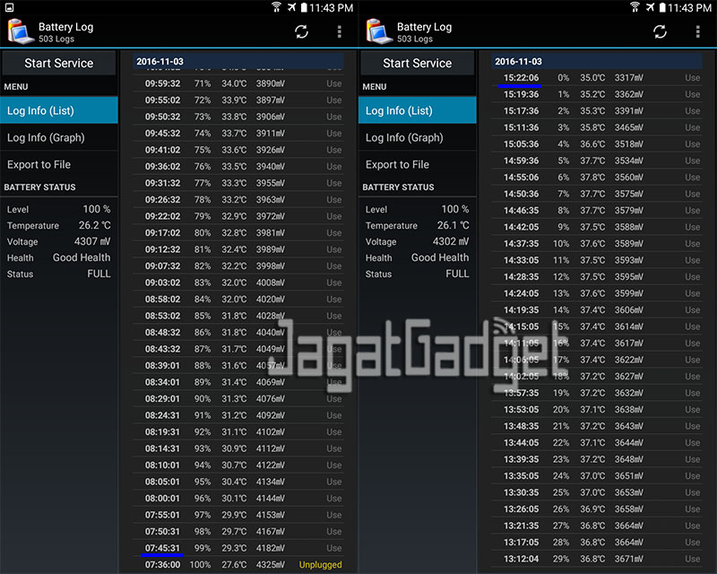 Tak berhenti sampai di situ, kami pun juga menguji ketahanan baterai Galaxy Tab A 7.0 (2016) dengan memutar video 720p secara berulang (loop) menggunakan aplikasi MXPlayer. Hasilnya, smartphone ini bisa bertahan hingga 7 jam 37 menit lamanya.