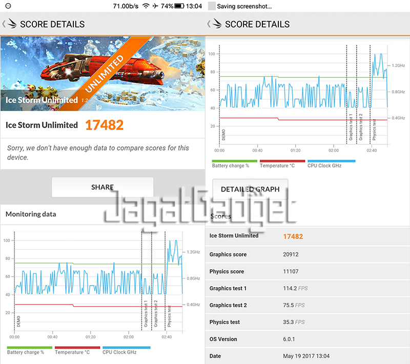 GeekBench 3 merupakan benchmark cross platform yang mengukur kinerja prosesor sebuah perangkat smartphone, tablet, dan PC. Aplikasi ini menggunakan skenario simulasi real world sehingga mampu menganalisa performa sebuah prosesor saat menggunakan single core atau multi core. Semakin tinggi nilainya, semakin baik.