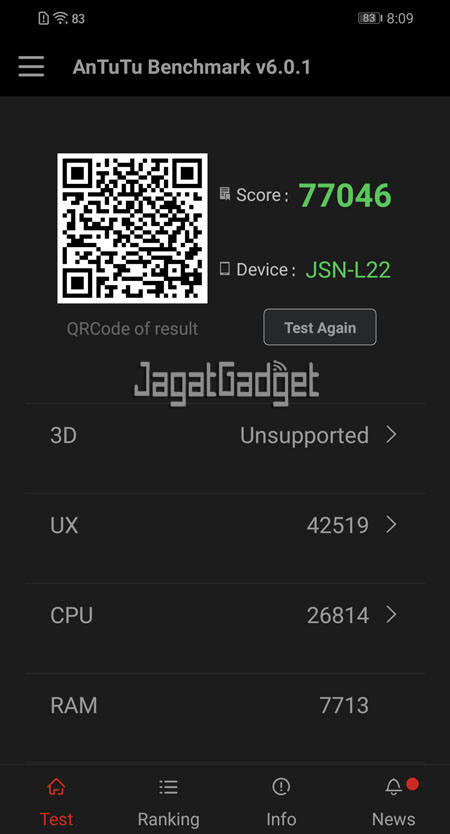 Aplikasi benchmark yang satu ini adalah salah satu yang paling banyak digunakan untuk mengukur performa sebuah perangkat Android. AnTuTu menjalankan set pengujian untuk penilaian performa perangkat yang dibagi ke dalam empat kelompok, yaitu Graphics, CPU, UX (User Experience), dan RAM.