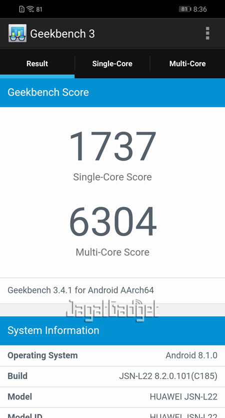 GeekBench merupakan benchmark cross platform yang mengukur kinerja prosesor sebuah perangkat smartphone, tablet, dan PC. Aplikasi ini menggunakan berbagai algoritma komputasi yang banyak digunakan di skenario real world sehingga mampu menganalisa performa sebuah prosesor saat menggunakan single core atau multi core.