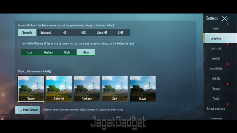 - Default Max: Smooth Ultra (tidak bisa membuka Smooth Extreme karena keterbatasan pada OS Android 11)