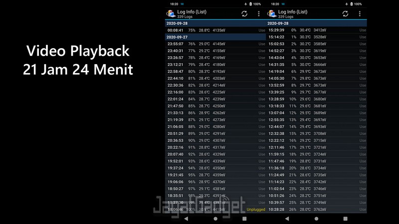 Pada uji Video Playback, Vivo V20 bisa bertahan hingga 21 jam 24 menit.