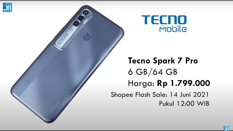 TECNO Spark 7 Pro dengan opsi RAM/Storage sebesar 6 GB/64 GB dijual dengan harga resmi Rp 1.899.000.