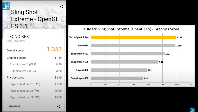 3DMark Sling Shot Extreme (OpenGL ES 3.1): Graphics Score 1189