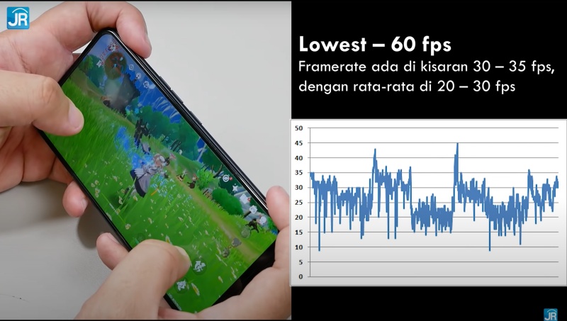 - Genshin Impact [Lowest – 60 fps]: saat berada di area yang tidak banyak objeknya, framerate bisa ada di kisaran 30 – 35 fps, dengan rata-rata di 20 – 30 fps saat menjelajahi map dan di sekitar 20 fps saat battle, bisa sesekali drop juga ke bawah 20 fps.