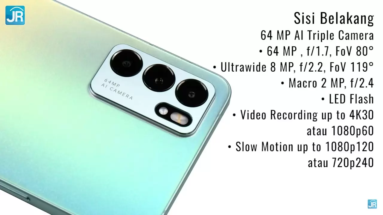 - 5G – modem 5G terintegrasi di Dimensity 900 membuat Reno6 5G ini hadir dengan dukungan untuk konektivitas seluler modern ini