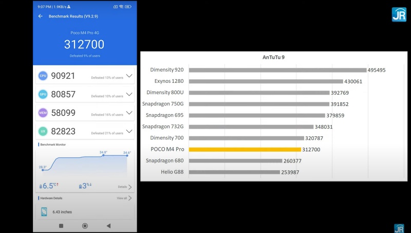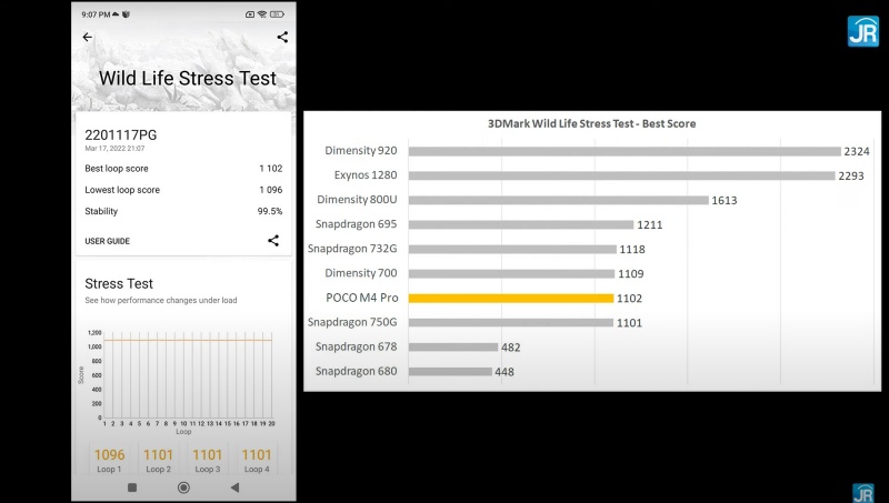 Benchmark ini menunjukkan kalau si Helio G96 ini ada di kelas menengah, dan kestabilan performanya terbilang cukup baik. Agak berbeda hasilnya dengan saudaranya walaupun pakai SoC sama, di sini hasilnya cenderung lebih baik.