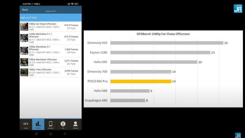 - GFXBench 1080p Car Chase Offscreen: 14 FPS