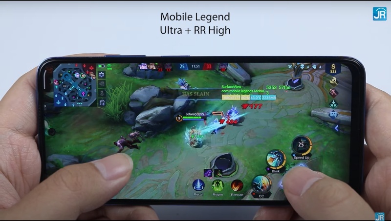 Dipakai main sampai 20 menit nonstop, frameratenya masih kisaran 30-40 FPS. Untuk smartphone kelas harga ini, sulit untuk bisa mendapatkan framerate yang konsisten. Saat dipakai battle yang ramai sekali, hasil yang didapat sekitar 30 FPS ke bawah, kisaran 20-30 FPS.
