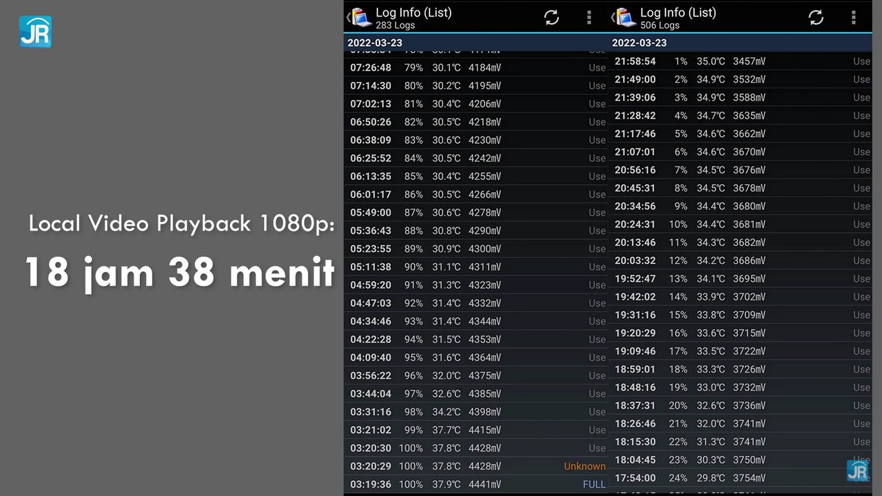 - Local Video Playback 1080p: 18 jam 38 menit. Bukan hasil yang terbilang buruk, tapi juga belum bisa dikatakan baik.