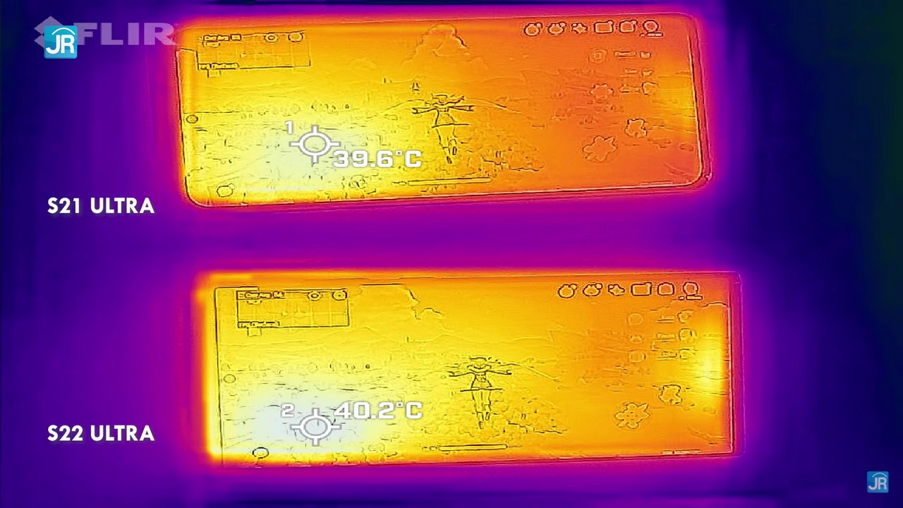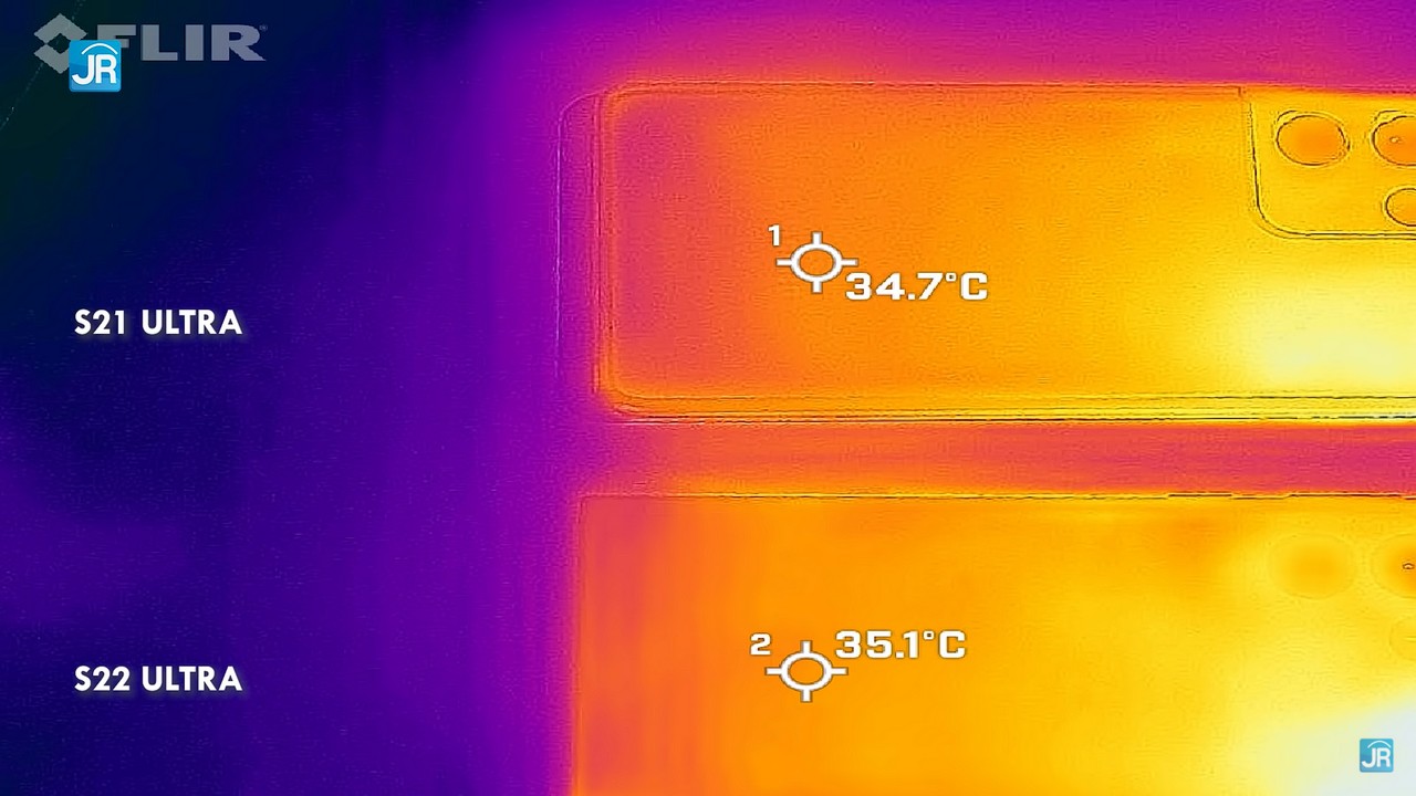 Sekitar 0,6°C derajat lebih tinggi dibandingkan dengan S21 Ultra yang performanya kalah kencang. Sementara sisi belakang terpanas, berada di kisaran 40-41°C. Menariknya, sisi yang jauh dari titik terpanas, suhunya hanya berkisar 35°C.