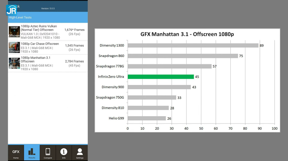 - GFXBench Manhattan 3.1 Offscreen 1080p (OpenGL ES 3.1): 45 fps