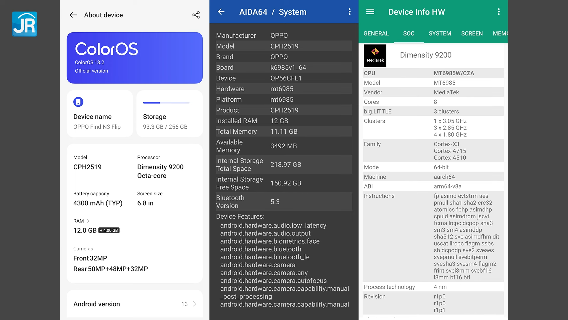 SoC: Dimensity 9200. Ini SoC kelas premium dari Mediatek untuk tahun 2023 ini. Penerus dari Dimensity 9000+ yang digunakan Find N2 Flip.