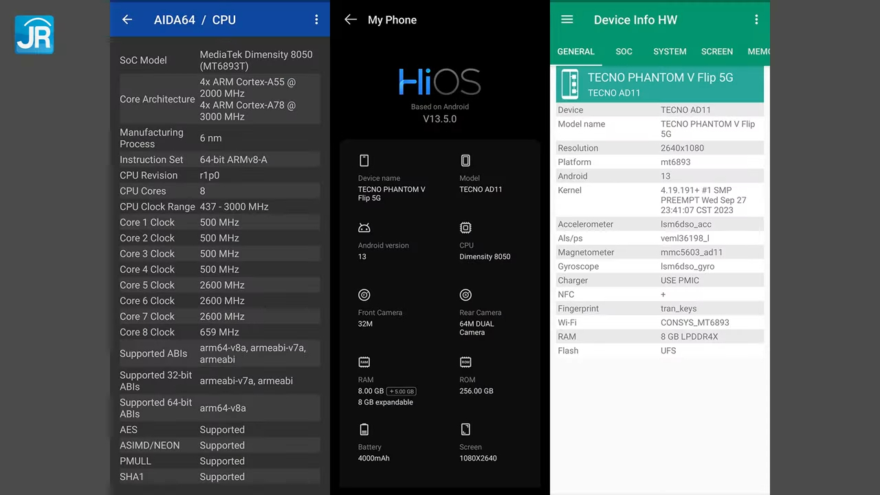 OS: HiOS 13.5 Flip, dengan basis Android 13