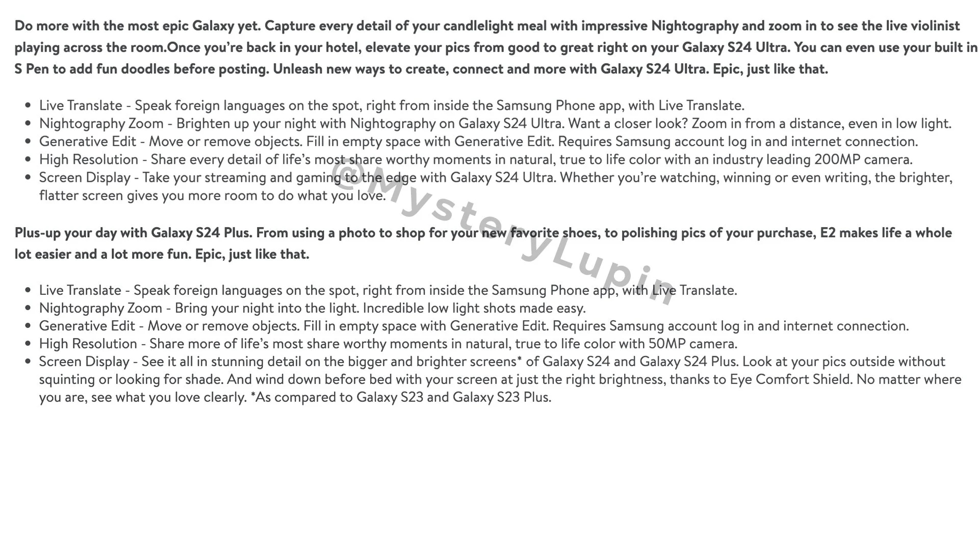 Leaker Mystery Lupin melalui platform X baru-baru ini mengungkap daftar fitur yang akan menjadi key selling point dari Samsung Galaxy S24 Series. Di antara daftar tersebut ada fitur bernama Generative Edit, yang bakal tersedia baik untuk model S24, S24 Plus, dan S24 Ultra. Fitur seperti apa itu?