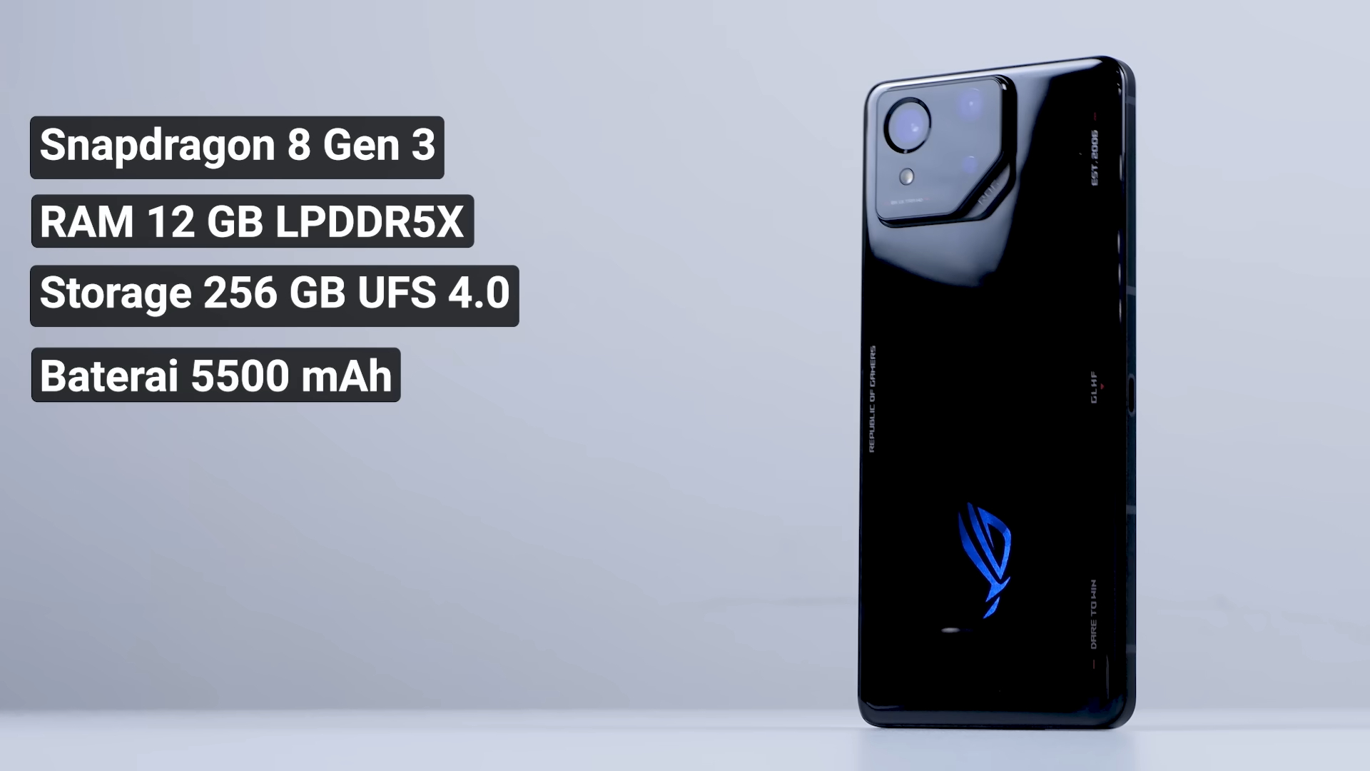 - Charging: 65W Hyper Charge, dan ROG Phone 8 ini juga mendukung fitur Bypass Charging.