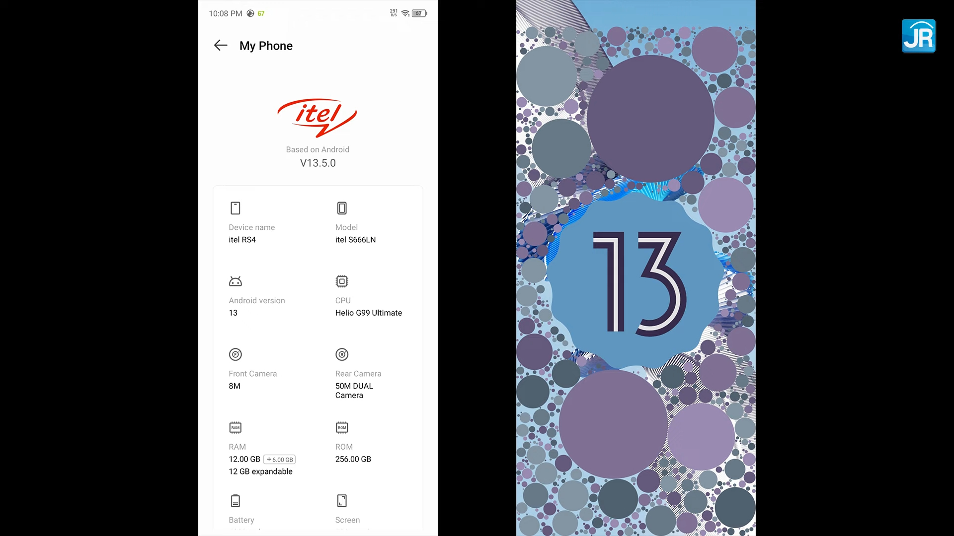 OS: itelOS versi 13.5.0 dengan basis Android 13