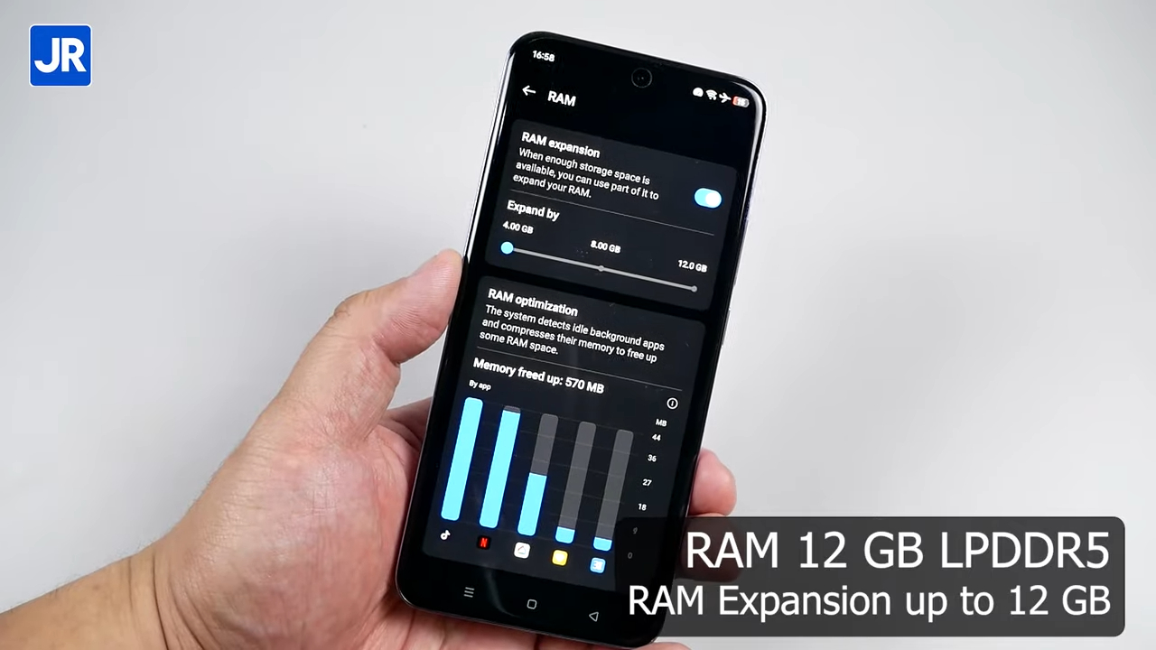 RAM 12 GB LPDDR5X, dengan RAM Expansion sampai 12 GB