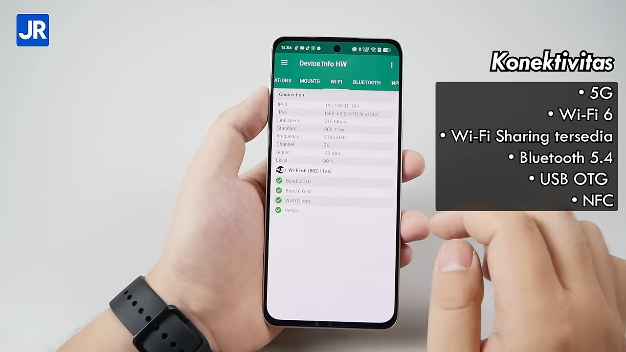 - Bluetooth Codec: SBC, AAC, LDAC, LHDC, dan keluarga Qualcomm aptX.