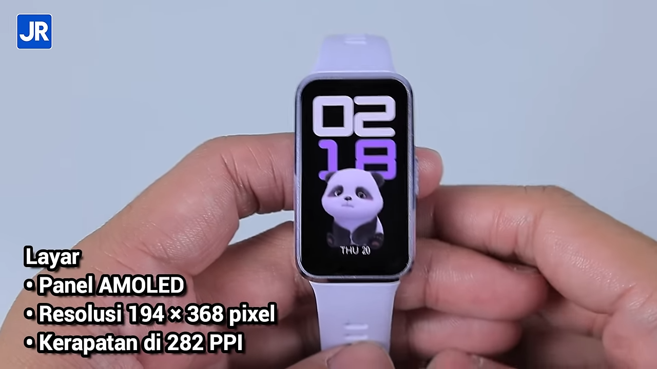 Desainnya minimalis tapi keren, dengan banyak pilihan warna! Layarnya juga sudah pakai AMOLED, jadi tampilannya gak perlu diragukan lagi. Baterai nya juga katanya awet, diklaim bisa sampai 14 hari! Fitur kesehatan dan olahraganya pun terbilang cukup banyak nih di sini.