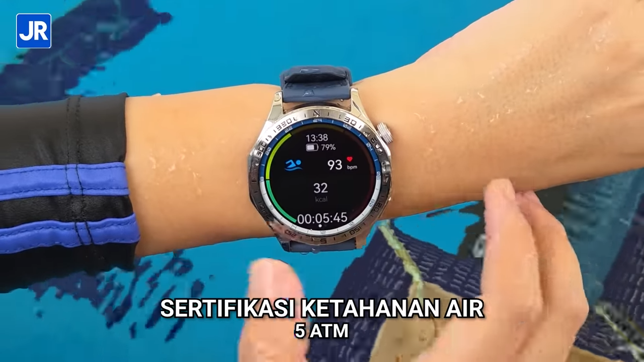 Ya, ini adalah Advan On Move. Kita bisa jawab WhatsApp Call langsung dari smartwatch! Bisa pakai Chat GPT, jadi kita bisa punya AI Chatbot di pergelangan tangan kita! Ada built-in GPS! Mau install aplikasi pihak ketiga? Bisa juga! Layar? Sudah AMOLED dong! Jadi, tampilan layarnya mantap dan terang juga. Cocok dipakai di luar ruangan. Dia juga bisa dipakai saat berenang, karena punya ketahanan air 5 ATM! Menarik ya untuk smartwatch di bawah Rp 1 juta.