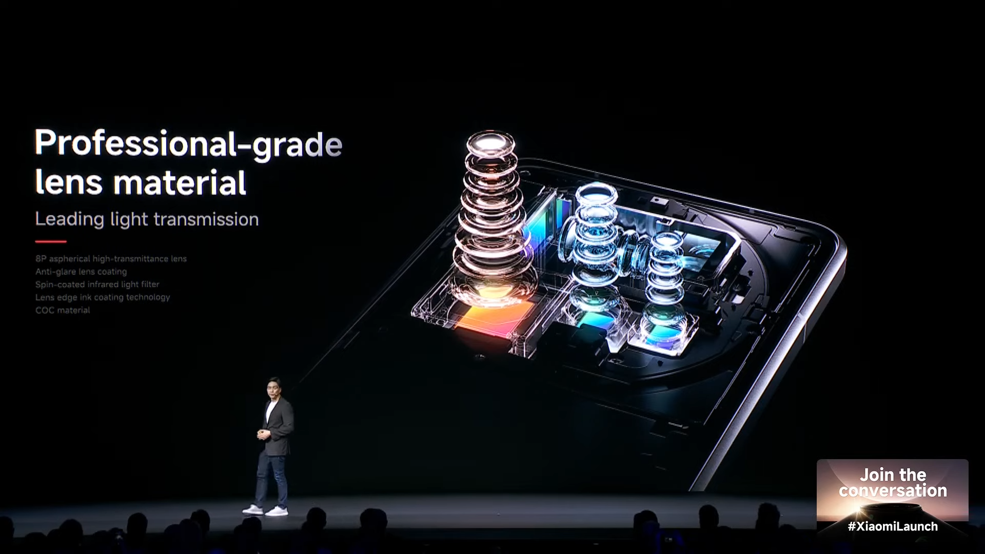 · Leica VARIO-SUMMILUX 1:1.62-2.2/14-60 ASPH. · Leica 23mm main camera – 50MP, ƒ/1.62, OIS – Light Fusion 900 image sensor – 1/1.31″ sensor size – 2.4μm Super Pixel – 7P lens · Leica telephoto camera – 50MP, ƒ/2.0, OIS – 60mm equivalent focal length – Floating telephoto lens – Supports 10cm macro photography · Leica ultra-wide camera – 50MP, ƒ/2.2, 115° FOV – 14mm equivalent focal length · Two photographic styles: Leica Authentic Look & Leica Vibrant Look · Master-lens system: 23mm, 35mm, 60mm, 75mm · Xiaomi ProFocus · Portrait mode · Night mode · 8K video recording at 24fps, 30 fps · 4K Dolby Vision® video recording at 24fps, 30fps, 60fps · 4K Log video recording at 24fps, 30fps, 60fps · Movie mode · MasterCinema · Ultra Night Video Front Camera · 32MP, ƒ/2.0, 90° FOV · 21mm equivalent focal length · HDR · Night mode · Portrait mode · Voice shutter · HDR10+ video recording