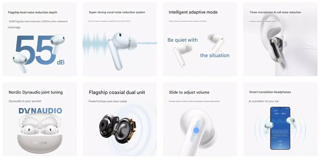 OPPO telah memperkenalkan generasi baru dari earbuds besutannya dengan menghadirkan OPPO Enco Free4 untuk pasar Tiongkok lebih dulu. TWS ini memiliki ANC (Active Noise Cancellation) 55 dB di rentang frekuensi 5500 Hz, mendeteksi bising 900 kali per detik untuk peningkatan 200% peredaman suara manusia, dan telah tersertifikasi TUV Rheinland.