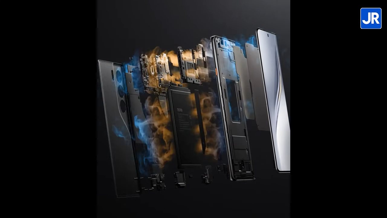 Untuk Cooling System tidak disebutkan secara spesifik apakah ini vapor chamber atau bukan tapi yang jelas ada beberapa komponen untuk penyebaran suhu seperti di gambar berikut ini.