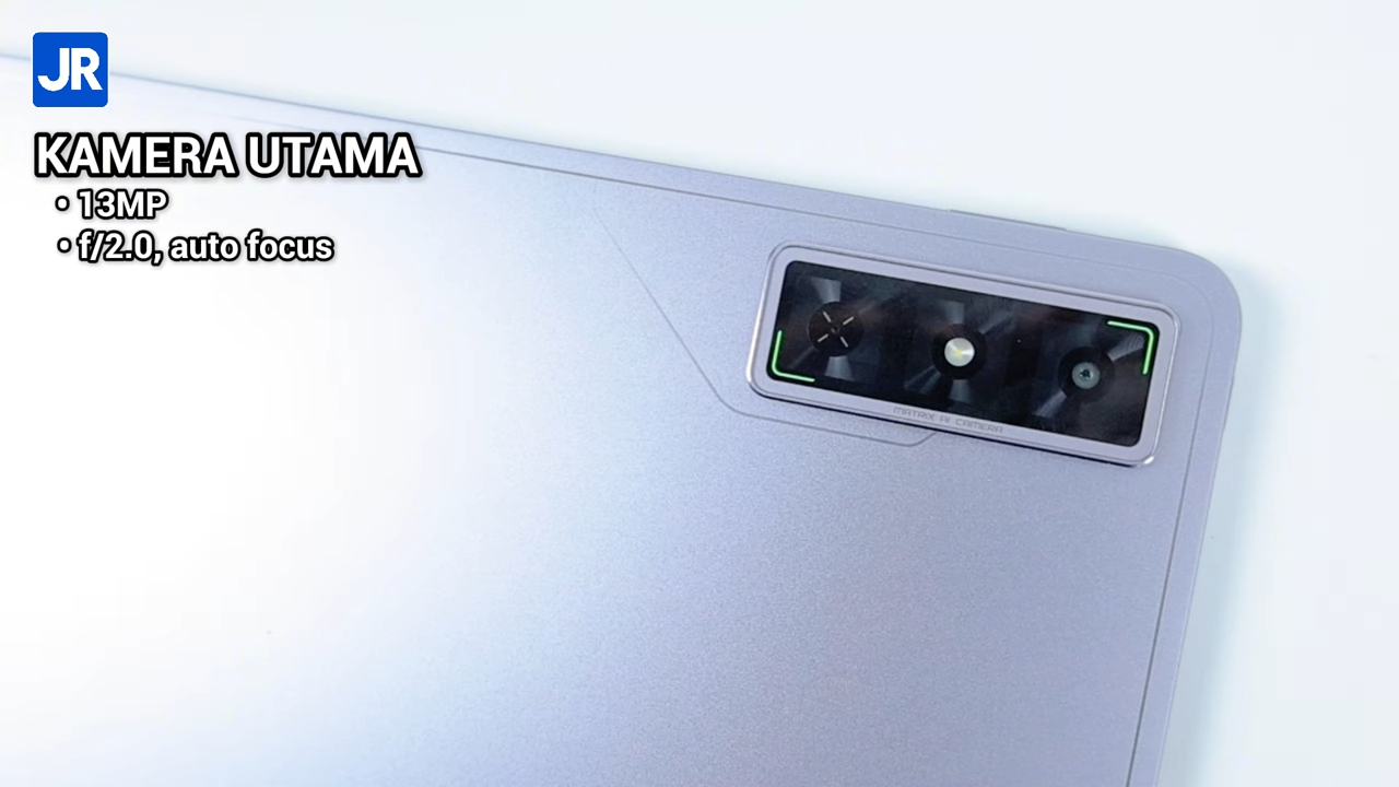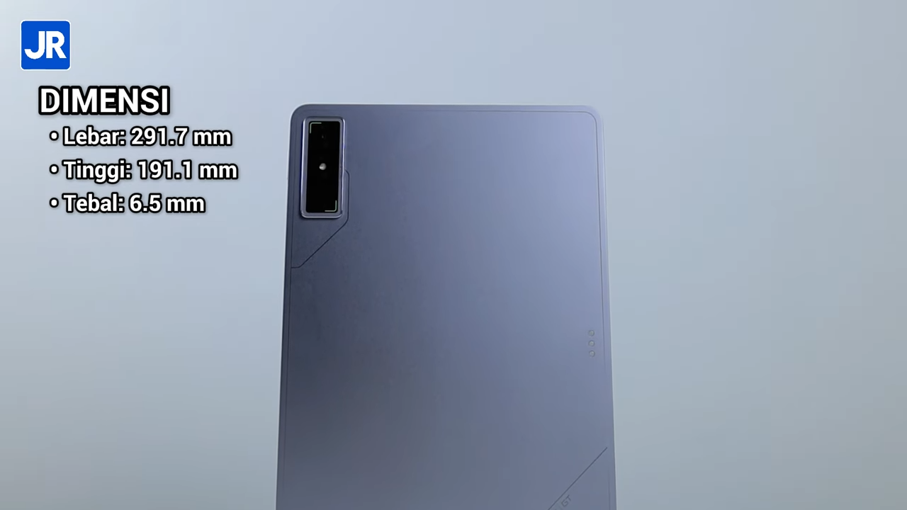 Terdapat ornamen ala-ala mecha design di area punggung hingga modul kamera belakang yang menguatkan kesan gaming di tablet ini. Tapi ornamen mecha-nya tidak terlalu banyak sehingga tidak menimbulkan kesan rame saat dipandang.