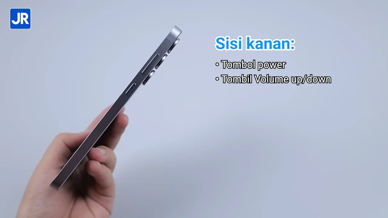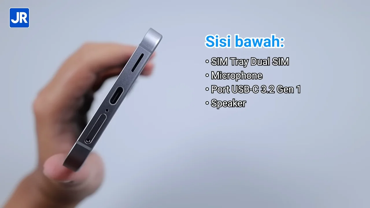 Sisi Bawah: SIM Tray Dual SIM, Microphone, Port USB C versi 3.2 Gen 1, Speaker.