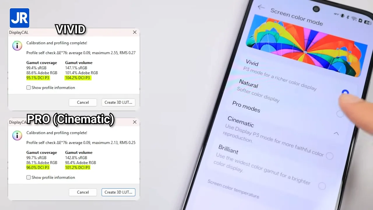 - Mode Vivid dan Pro Cinematic, diarahkan untuk dekat dengan 100% DCI-P3. Ini cocok untuk menikmati konten atau main game.