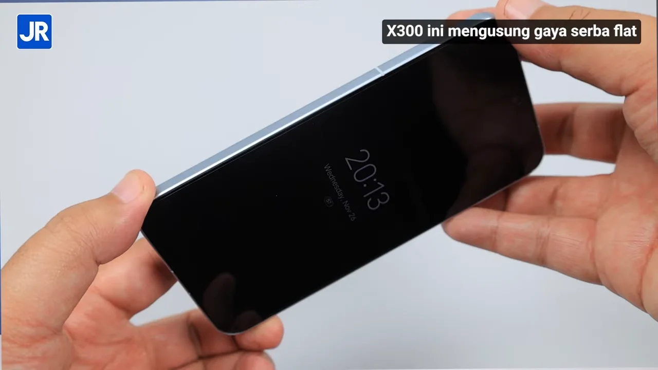 Di luar modul kamera, ada beberapa hal yang berbeda. X300 ini mengusung gaya serba flat. Jadi, layar, frame, dan bodi belakang smartphone ini flat. Ini berbeda dengan X100 Series dan X200 Series yang punya layar dan bodi belakang curved. Tapi, area pertemuan antara frame dengan layar dan bodi belakang terlihat dibuat lebih halus, dengan gaya Rounded Corners.
