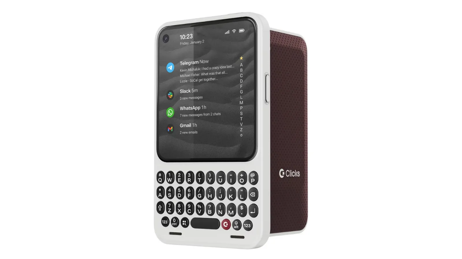 Clicks Communicator juga membawa fitur unik seperti tombol samping dengan LED yang bisa dikustomisasi. LED ini bisa menampilkan warna berbeda untuk kontak atau aplikasi tertentu. Tombol tersebut juga bisa dipakai untuk merekam suara hingga mengubah ucapan menjadi teks.