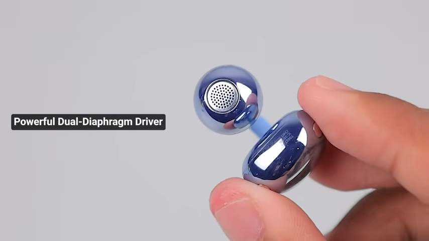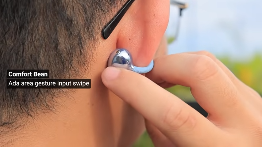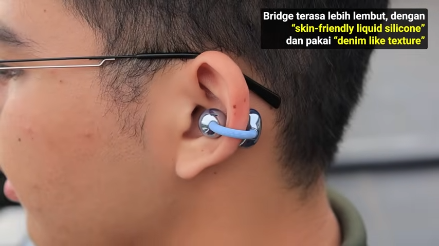 Ada Powerful Dual-Diaphragm Driver di dalamnya. Driver baru ini disebut menghasilkan suara yang lebih kencang dengan bass yang lebih baik. Sementara bagian Comfort Bean ini ada di belakang daun telinga. Di Comfort Bean ada area yang bisa menerima input gesture swipe. Ini baru ya.