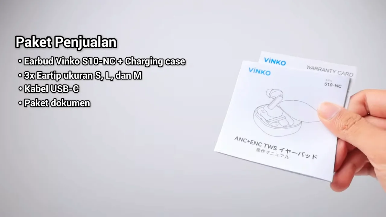 - Di dalam paket penjualan, tentu terdapat sepasang earbud Vinko S10-NC beserta charging case-nya.