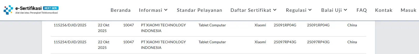 Xiaomi Pad 8 dan Xiaomi Pad 8 Pro varian global diketahui memiliki nomor model 25097RP43G dan 25091RP04G. Kedua tablet tersebut telah lolos sertifikasi IMDA di Singapura, FCC, TDRA di Uni Emirate Arab, hingga sertifikasi Postel dari Komdigi yang menjadi pertanda peluncuran resminya di Indonesia.