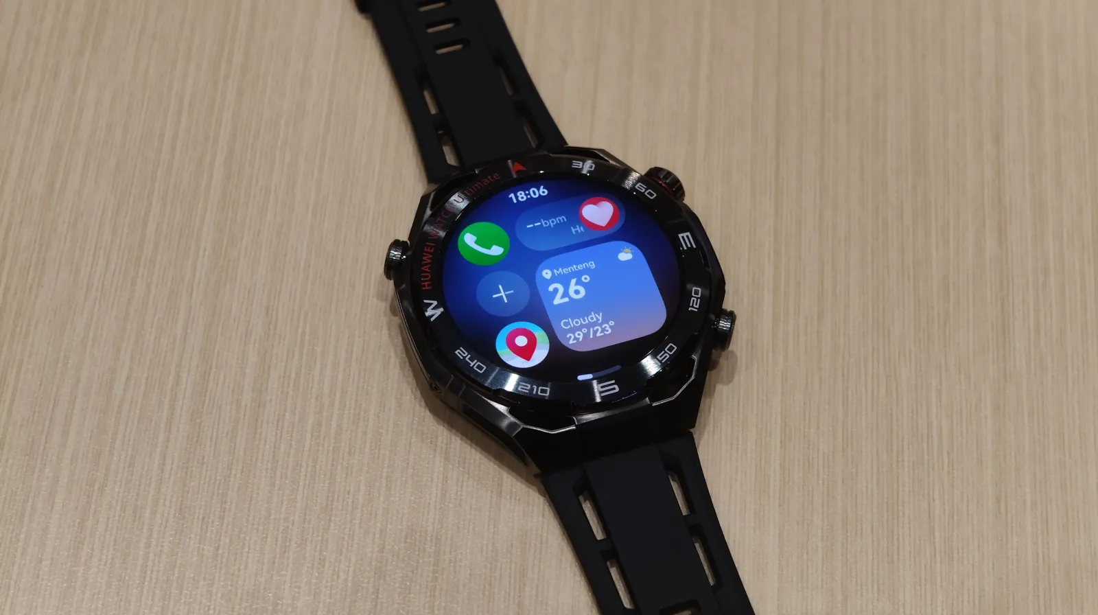 Huawei Watch Ultimate 2 hadir dengan material kelas premium, mulai dari casing liquid metal berbasis zirkonium, bezel keramik nanokristal dua warna, hingga kaca safir yang melindungi layar AMOLED LTPO2 berukuran 1,5 inci. Layarnya kini mampu mencapai kecerahan 3.500 nits dan punya bezel 18% lebih tipis.