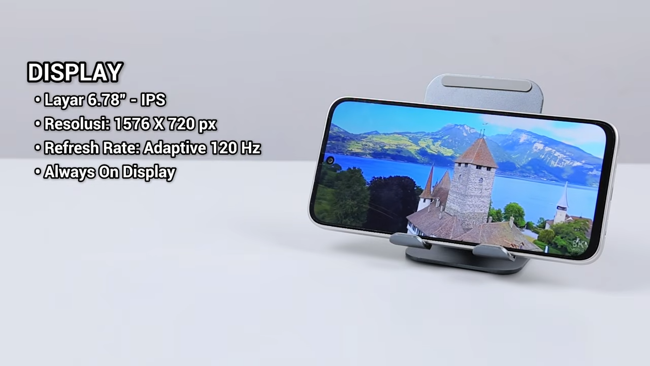 - 6.78 inci IPS, resolusi HD+, 1576 x 720 piksel