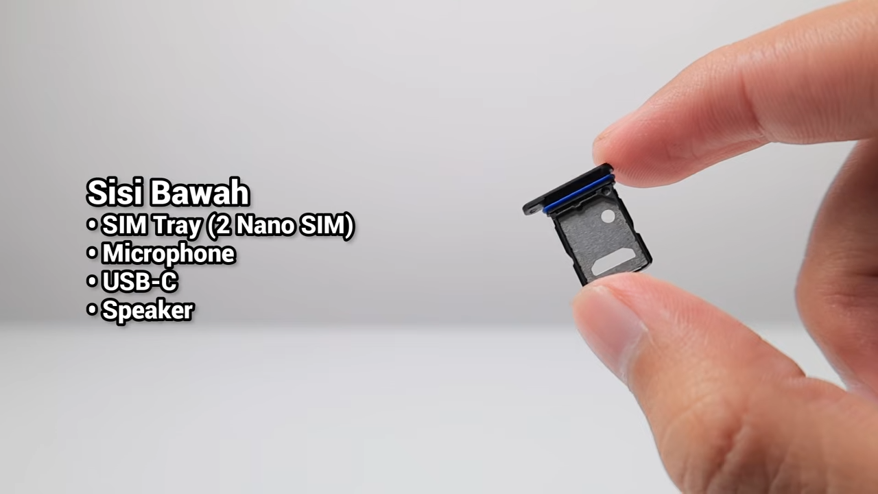 Sisi Bawah: SIM Tray (2 Nano SIM), microphone, USB C, speaker
