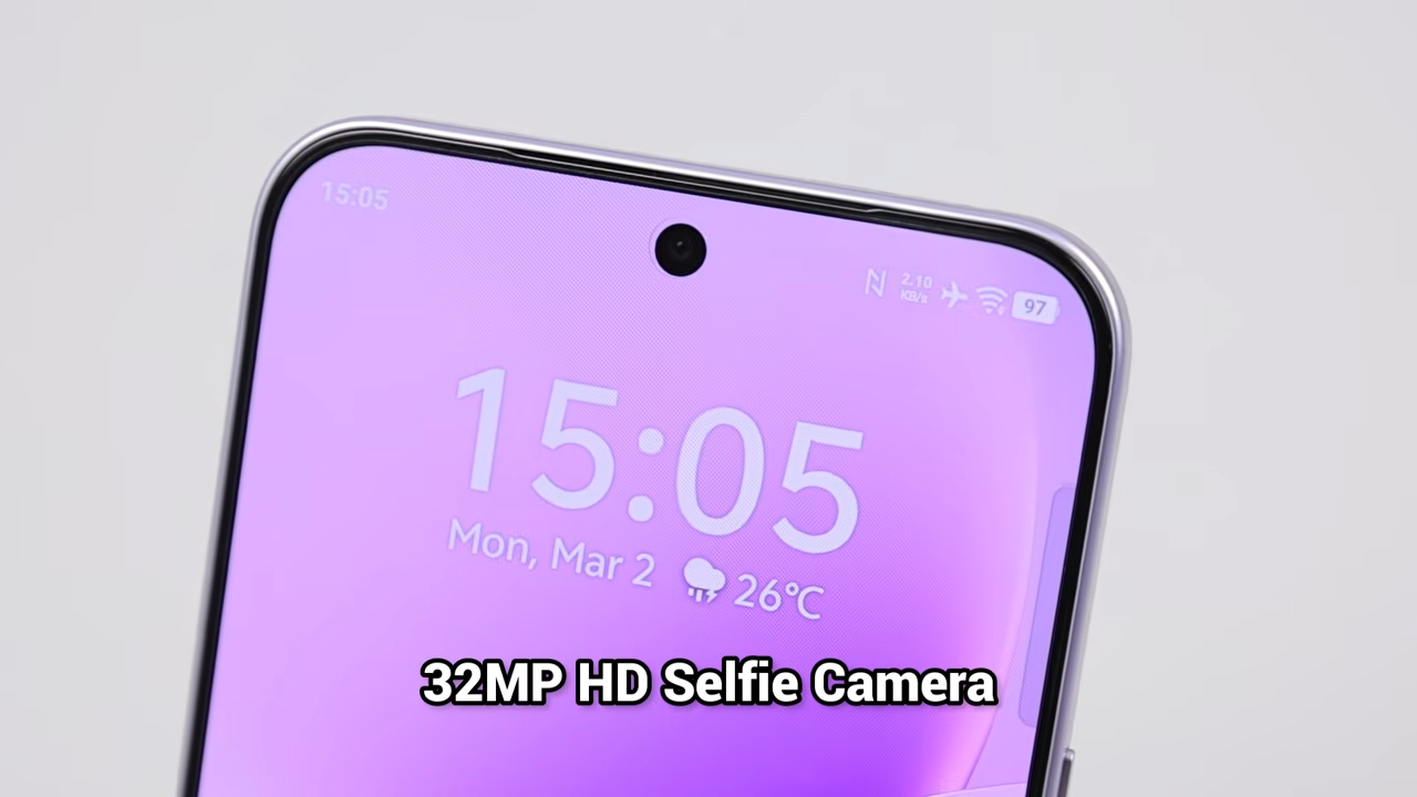 - Lalu ada 32MP HD Selfie Camera, di punch hole di area tengah atas layar.