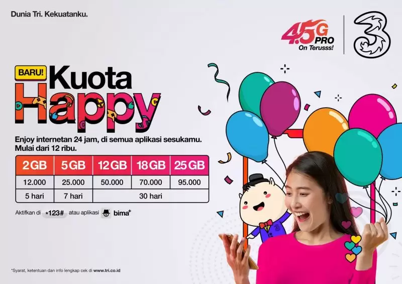 3 Indonesia Hadirkan Paket Baru “Kuota Happy”